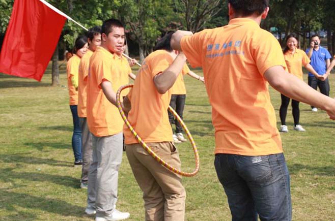 戶外拓展活動(dòng)開始了!先是由我們總經(jīng)理致詞,講述活動(dòng)的游戲規(guī)則,分成若干組進(jìn)行比賽。我們的比賽項(xiàng)目有:“拔河比賽”、“同心協(xié)力”、“轉(zhuǎn)呼啦圈致力”、“盲人踢球”等等,活動(dòng)勝出的組,還有豐富的獎(jiǎng)金及禮品。