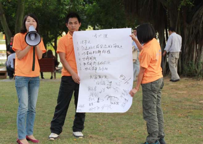 挑戰(zhàn)自我的同時(shí),發(fā)掘出自身的全部潛能,挑戰(zhàn)極限、超越自我,磨練個(gè)人以及整個(gè)團(tuán)隊(duì)挑戰(zhàn)困難、戰(zhàn)勝困難的決心和毅力!總經(jīng)理最后總結(jié)道:“堅(jiān)持到底、團(tuán)隊(duì)協(xié)作很重要的,團(tuán)隊(duì)的成功是要靠每個(gè)成員的努力!