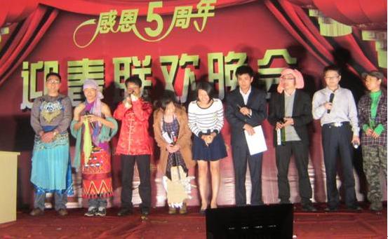 伴隨著一片片掌聲的揚(yáng)起,我們的后勤部隊(duì)把所有吃的東西都搬了上來,晚宴也在進(jìn)行中。灑桌上,熱湯的沸滾聲、同事們的嘻笑聲以及臺(tái)上正再進(jìn)行的腦筋急轉(zhuǎn)彎的節(jié)目。表情如此多樣。