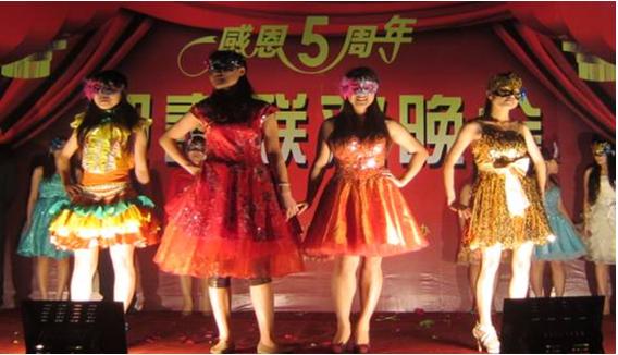 在主持人宣布晚會(huì)開始前,市場(chǎng)部的同事們的一場(chǎng)甩蔥熱舞,拉動(dòng)了全場(chǎng)的氣氛。