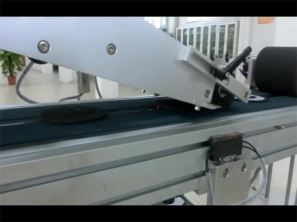 平面不干膠定位貼標機貼標的過程為:當傳感器發出貼標物預備貼標的信號后,貼標機上的驅動輪滾動。因為卷筒標簽在裝置上為張緊狀態,當底紙緊貼剝離板改變方向運行時,標簽因為自身材料具有一定的堅挺度,前端被強迫脫離、預備貼標。此時貼標物體剛好位于標簽下部,在貼標輪的作用下,實現同步貼標。貼標后,卷筒標簽下面的傳感器發出休止運行的信號,驅動輪靜止,一個貼標輪回結束。