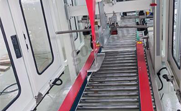 完成裝箱后,紙箱流轉至自動折蓋封箱機。該設備能自動完成上蓋的折合與膠帶的封貼,一氣呵成,保證箱體密封牢固、外觀統(tǒng)一。