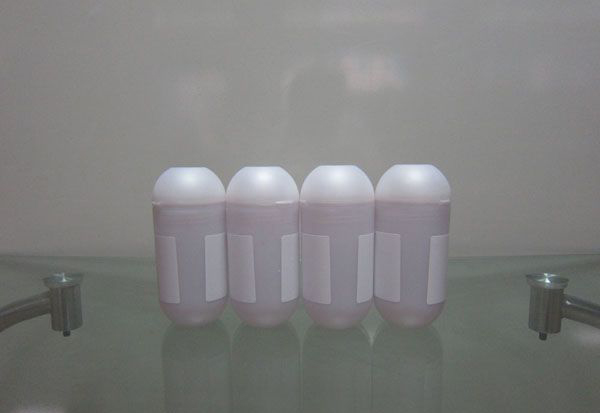 下圖是我公司全自動弧面雙標貼標機對塑料圓瓶進行弧面貼標的樣品圖片。