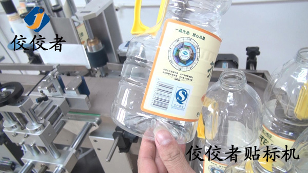 全自動芥花油瓶貼標機的工作原理和專用貼標機系列下的全自動紅酒貼標機是比較相似的。和其他圓瓶貼 標機一樣,貼完標簽需要覆標使標簽與瓶子更貼合,下面我們一起來看看全自動芥花油瓶貼標機的貼標樣品吧。