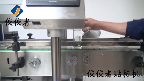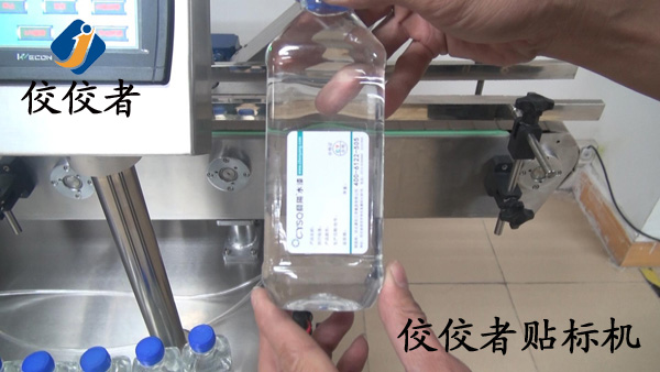 第二步:礦泉水導瓶完成后進入壓頂機構(gòu)傳送至測物電眼,當測物電眼檢測到產(chǎn)品時機器自動貼標。