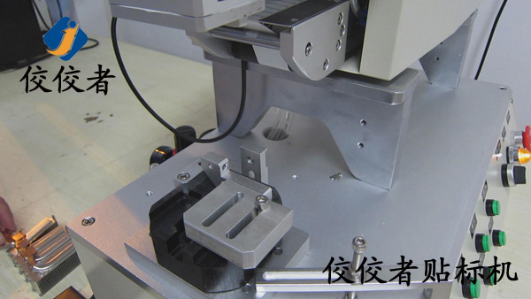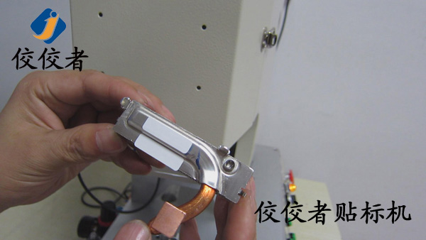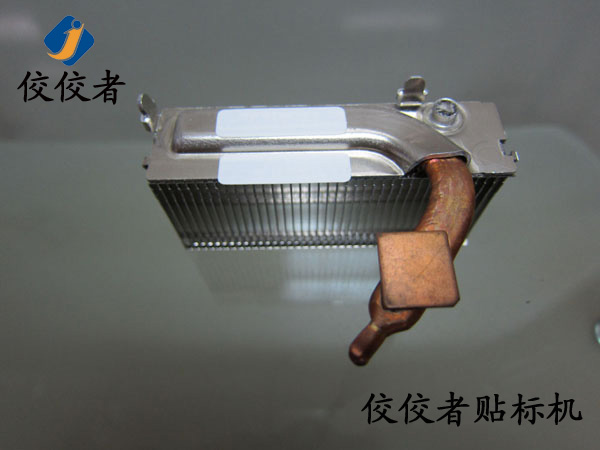 因為這款產(chǎn)品需要貼兩張標簽。那么我們首先在散熱器上面貼上一張標簽。當我們貼好一張標簽之后,再貼另外一張標簽的時候,我們需要再一次調(diào)整模具的位置來實現(xiàn)另外一張標簽的貼標。所以我們建議客戶在同一個產(chǎn)品上面貼兩張標簽的時候,盡力做到一張一張的批量貼標。這樣可以有效增加生產(chǎn)率。